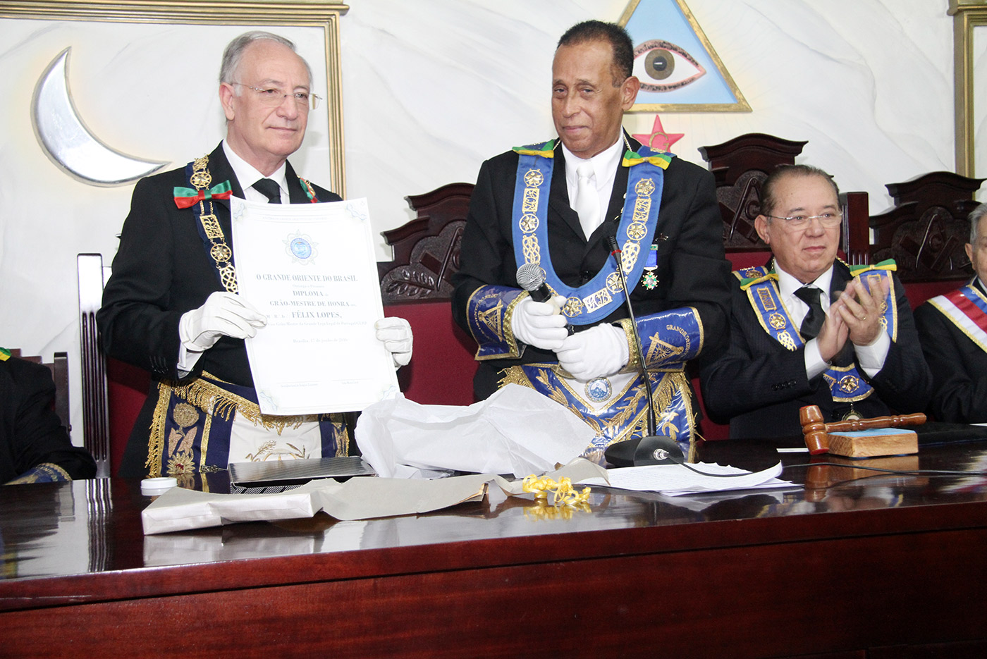 Presidente Mucio Bonifácio Guimarães recebe o Grão-Mestre Geral do GOB – Marcos José da Silva na SAFL. Em 18/06/2016 Revista Universo Maçônico 21 de junho de 2016 Galeria de Fotos Foi realizada às 10h do dia 18/06/2016 (sábado) na sede do Grande Oriente do Brasil (GOB) em Brasília – DF, SGAS –Av. W-5- Quadra 913 – Conjunto – H – CEP 70390-130 a sessão da Soberana Assembleia Federal Legislativa (SAFL) (http://www.safl.com.br) tendo como Mesa Diretora ADMINISTRAÇÃO 2013/2015: Presidente: Mucio Bonifácio Guimarães, 1º Vigilante: Adão José de Oliveira, 2º Vigilante: Carlos Teixeira Filho, Gr.’. Orador: Jayme Henrique Rodrigues dos Santos, Gr.’. Orador Adjunto: Gilberto Piselo do Nascimento, Gr.’. Secretário: Antônio Carlos Tofeti, Gr.’. Secretário Adjunto: Francisco de Assis Gonçalves, Gr.’. Tesoureiro: Odimilson Alves Pereira, Gr.’. Tesoureiro Adjunto: Isaias Luiz da Silva, Gr.’. Chanceler: Ariovaldo Torresson, Gr.’. Chanceler Adjunto: Alexandre Petri, Gr.’. Mestr.’. CCer.´.: Paulo Roberto Garcia Klein, Gr.’. Mestr.’. CCer.’. Adjunto: Paulo Roberto Lencki, Gr.’. Hospitaleiro: José Walter de Carvalho, Gr.’. Hospitaleiro Adjunto: José Fernando Pereira da Silva, Gr.’. Mestr.’. de Harmonia: Luis Cláudio Macedo, Gr.’.Mestr.’. de Harm.’. Adjunto: Gilmar Mendes, Gr.’. Cobridor: Adailson Moraes de Almeida, Gr.’. Cobridor Adjunto: Jean Túlio Stelatto, estando presente as Autoridades Maçônicas: Grão Mestre Geral: Marcos José da Silva e seu Adjunto: Sapientíssimo Eurípedes Barbosa Nunes, Vice-Grão-Mestre: Félix Lopes da Grande Loja Legal de Portugal (GLLP), Grão-Mestres Estaduais: Ac – José Rodrigues Teles, AL- Derli Klusener, AM – Armando de Souza Correa Junior, BA – Sílvio Souza Cardim, CE – Roberto Rocha Araújo, DF – Lucas Francisco Galdeano, ES – Américo Pereira da Rocha, GO – Luis Carlos de Castro Coelho, MA – Joao Soares Gomes Filho, MG – Eduardo Teixeira de Rezende, MS – Benilo Allegretti, MT – Antônio Francisco dos Passos, PA – Moacir Terrin Pereira, PB – Geraldo Alves do Santos, PE – Daury dos Santos Ximennes, PI – Antônio José Soares Dias, PR – Luiz Rodrigo Larsons Carsten, RJ – Edimo Muniz Pinho, RN – Antônio Pinheiro Barbosa Braga, RO – Juraci Jorge da Silva, RR – Raimundo Nonato Rodrigues Coelho, RS – Jorge Pedron de Las Llanas, SC – Adalberto Eyng, SE – Lourival Mariano de Santana, SP – Benedito Marques Ballouk Filho, TO – Geraldo Bento França, e mais de 1.875 Deputados Federais, Mestres Instalados e Mestres. Veja mais fotos no link – Rede Colmeia: https://goo.gl/iX0ChU Leave a ReplyYour email address will not be published.CommentName* Email* Website Salvar meus dados neste navegador para a próxima vez que eu comentar. Δ