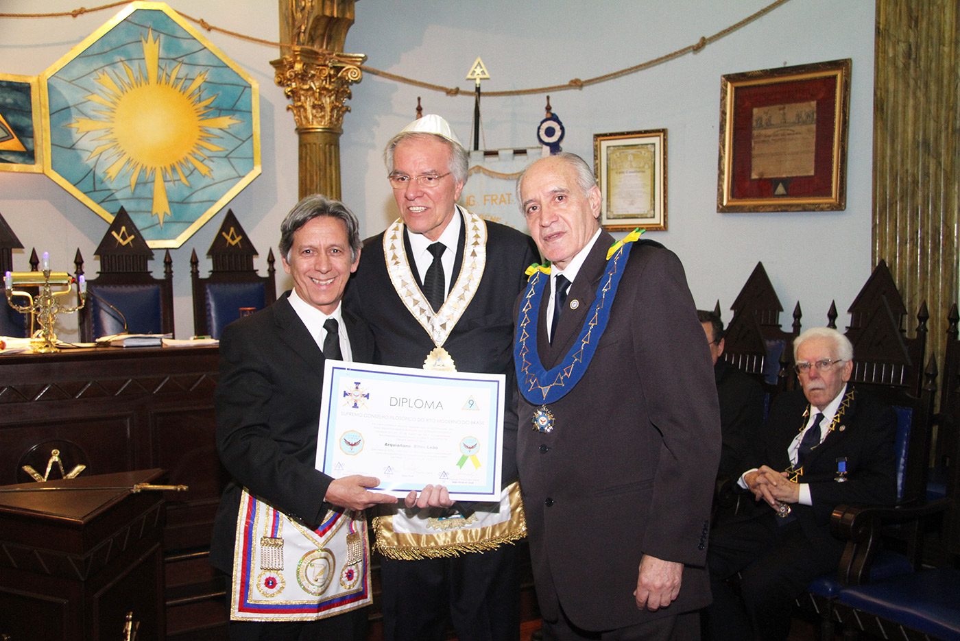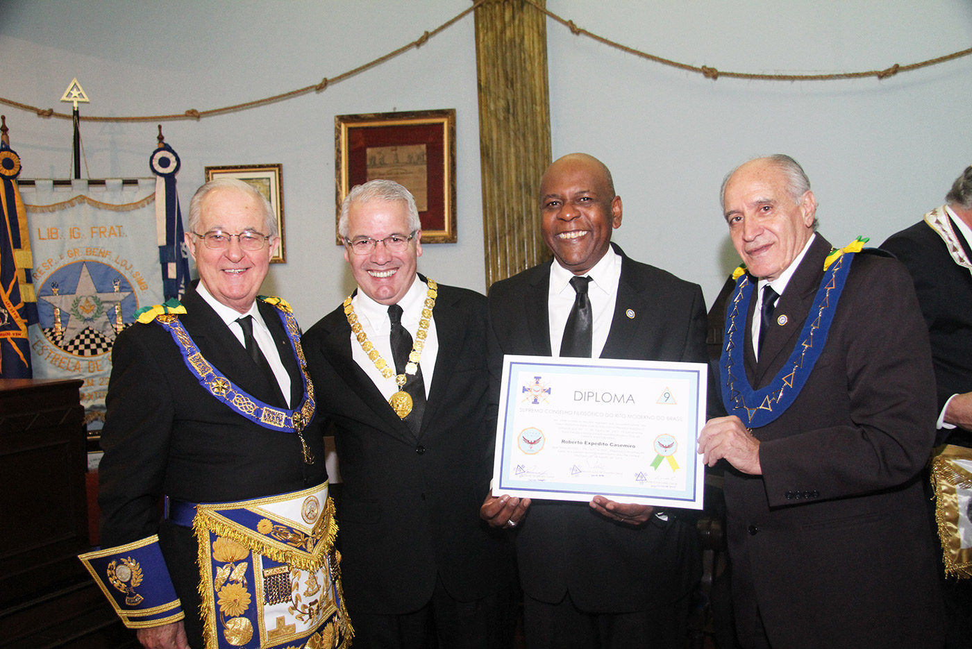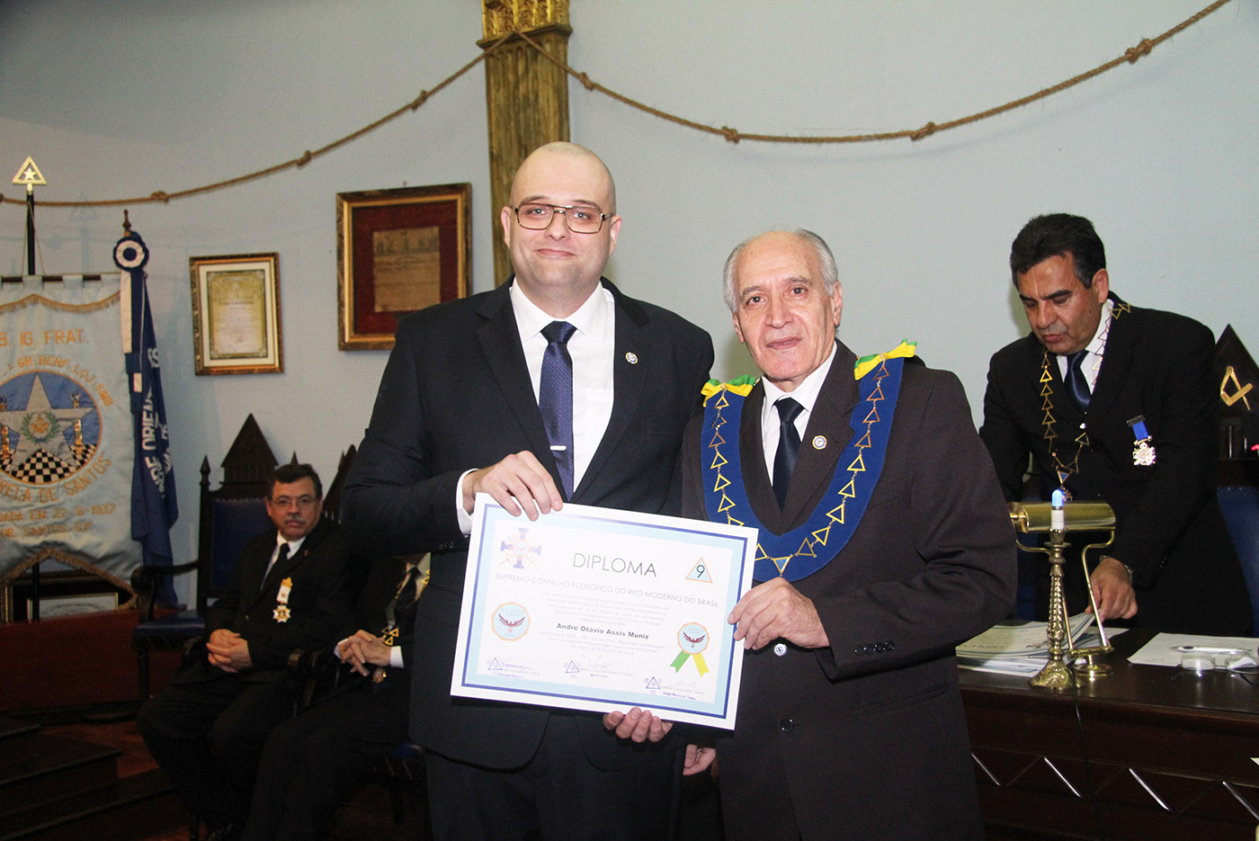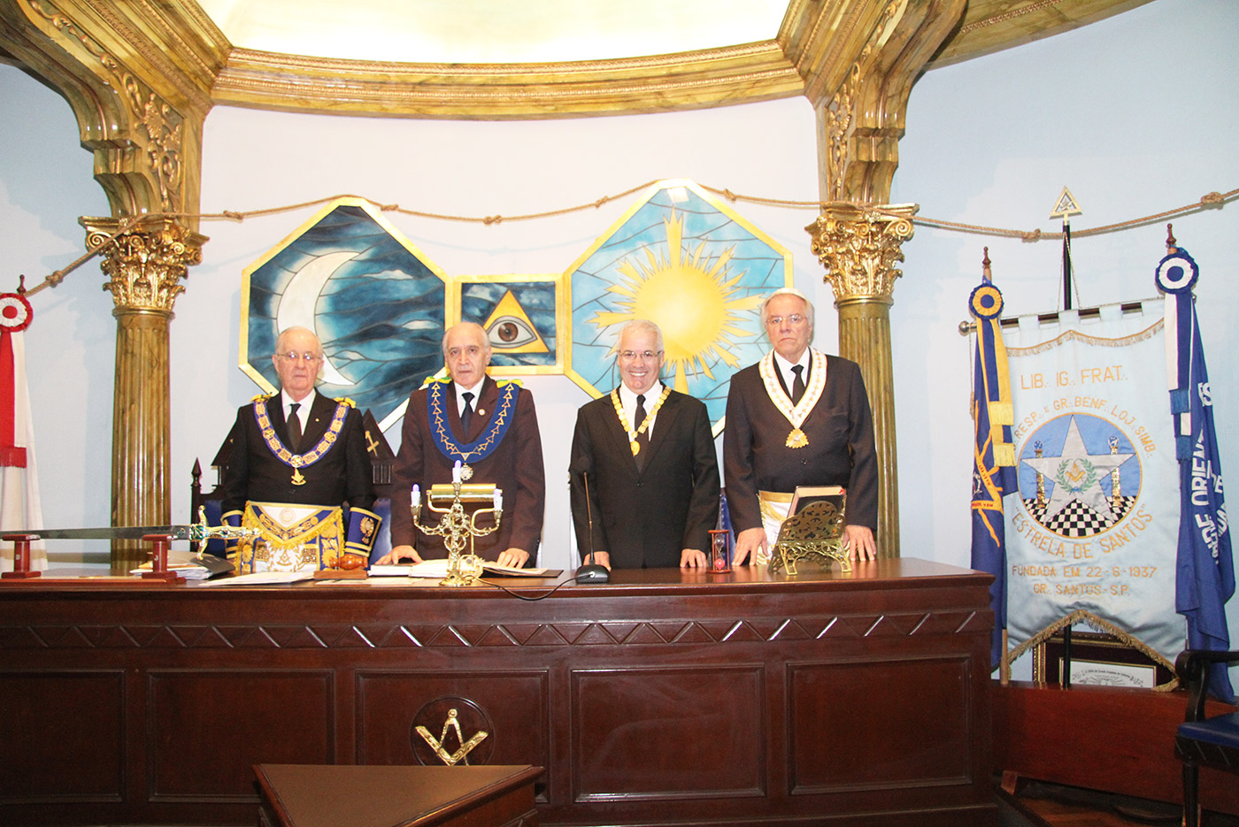 Dia 24/07/2015 (6ªf) às 19h no Templo Nobre da ARLS BENFEITORA E PORTADORA DA ESTRELA DA DISTINÇÃO MAÇÔNICA, ESTRELA DE SANTOS – 1156 – RITO MODERNO, localizada na Rua Almeida de Moraes, 13, ao Vale de Santos/SP, Sessão Ordinária do SUPREMO CONSELHO FILOSÓFICO DO RITO MODERNO DO BRASIL, tendo como Soberano Grande Inspetor Geral – Sérgio Ruas, RELAÇÃO DE MEMBROS FUNDADORES DO SUPREMO CONSELHO FILOSÓFICO DO RITO MODERNO DO BRASIL – SCFRMB, FUNDAÇÃO 01 DE AGOSTO DE 2013: ADEMIR CÂNDIDO DA SILVA, ADHEMAR RAMOS, ALBERTO CARNEIRO ESPÓSITO, ALBERTO LEÃO FUERTE, ALEXANDRE ARTHUR HAMPARIAN, ALFÉRIO DI GIAIMO NETO, ALFREDO FERNANDO V. POMMELLA, ANTONIO CARLOS MENDES, ANTONIO ESTEVAM GIFFONI, ARISTIDES MANOEL DE ARRUDA, ARQUIARIANO BITES LEÃO, AUGUSTO CESAR PINTO, BENEDITO MARQUES BALLOUK FILHO, CALIL BASSIT NETO, CÍCERO DE ARAÚJO FILHO, CLÁUDIO AURICHIO TURI, CLÁUDIO ROQUE BUONO FERREIRA, DARCI BONINI, DECIO TRIZI, DENIS TAFARELLO, EGISTO FRANCISCO RIGOLI, ÉRICO MANOEL DE ALMEIDA, FELIPE SPIR, FERNANDO TULLIO COLACIOPPO Sº., FRANCISCO GOMES DA SILVA, FRANKLIN DE OLIVEIRA, GERSON MAGDALENO, HELDER CYRILLO G. DA SILVA, ITIBERÊ ROCHA MACHADO, IVALDIR DUARTE, JAIR DE FRIAS, JAIR CALIXTO, JOÃO DE SOUZA MEIRELLES JR., JOSÉ FERREIRA DE ANDRADE JR., JOSÉ GONÇALVES, JOSÉ MORETZSHON DE CASTRO, JÚLIO BELMONTE DE CARVALHO, LUIZ PAULO SILVA, MARCELO MILITELLO, MARCELO GOMES FRANCISCO, MÁRCIO ANDRÉ RODRIGUES MARCOS, MARCIO BONTEMPO, MÁRIO SÉRGIO NUNES DA COSTA, MATHEUS CASADO MARTINS, MAURO CASTRO MACCORI, MIGUEL ANGELO DE SOUZA, MILTON MILANI, OCTÁVIO DE OLIVEIRA, ORENIDES PELEGRINI, ORLANDO MORGADO, PAULO RANGEL DO NASCIMENTO, PAULO SILAS CASTRO DE OLIVEIRA, PEDRO BORSETTO FILHO, PEDRO RODRIGUES BUENO JR., RENATO SOARES PRESTES, ROBERTO BATISTA DOS SANTOS, ROBERTO RODRIGUES BRAGA, RONALDO FIDALGO JUNQUEIRA, SÉRGIO RENATO MONTEIRO DE SOUZA, SÉRGIO RUAS, WALTER DE OLIVEIRA LIMA TEIXEIRA, WANDERLEY NEUSTAEDTER, WILSON AGUIAR FILHO, estando presente as autoridades maçônicas SÉRGIO RUAS – Ministro Presidente do STEM, Benilo Allegretti Grão Mestre Estadual do Mato Grosso do Sul, MÁRIO SÉRGIO NUNES DA COSTA – GME-Honra-GOSP, FERNANDO TULLIO COLACIOPPO Sº. – Secretário Geral Adj. Comunicação e informática do GOB, PAULO SILAS CASTRO DE OLIVEIRA – Pres. GCKFRMB/SP, JOSÉ ROBERTO SOUZA Dep. Federal/GOB, entre outras autoridades.