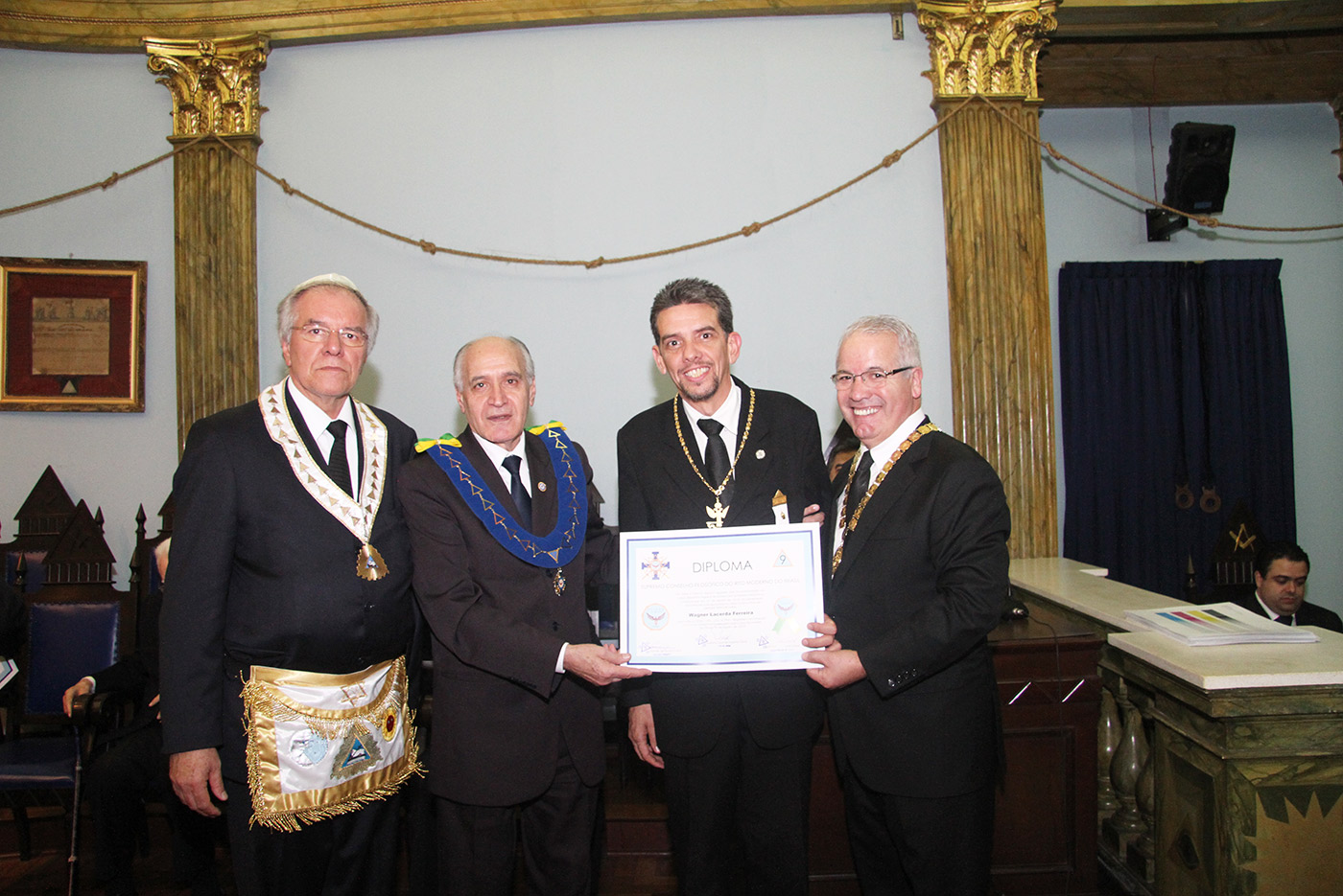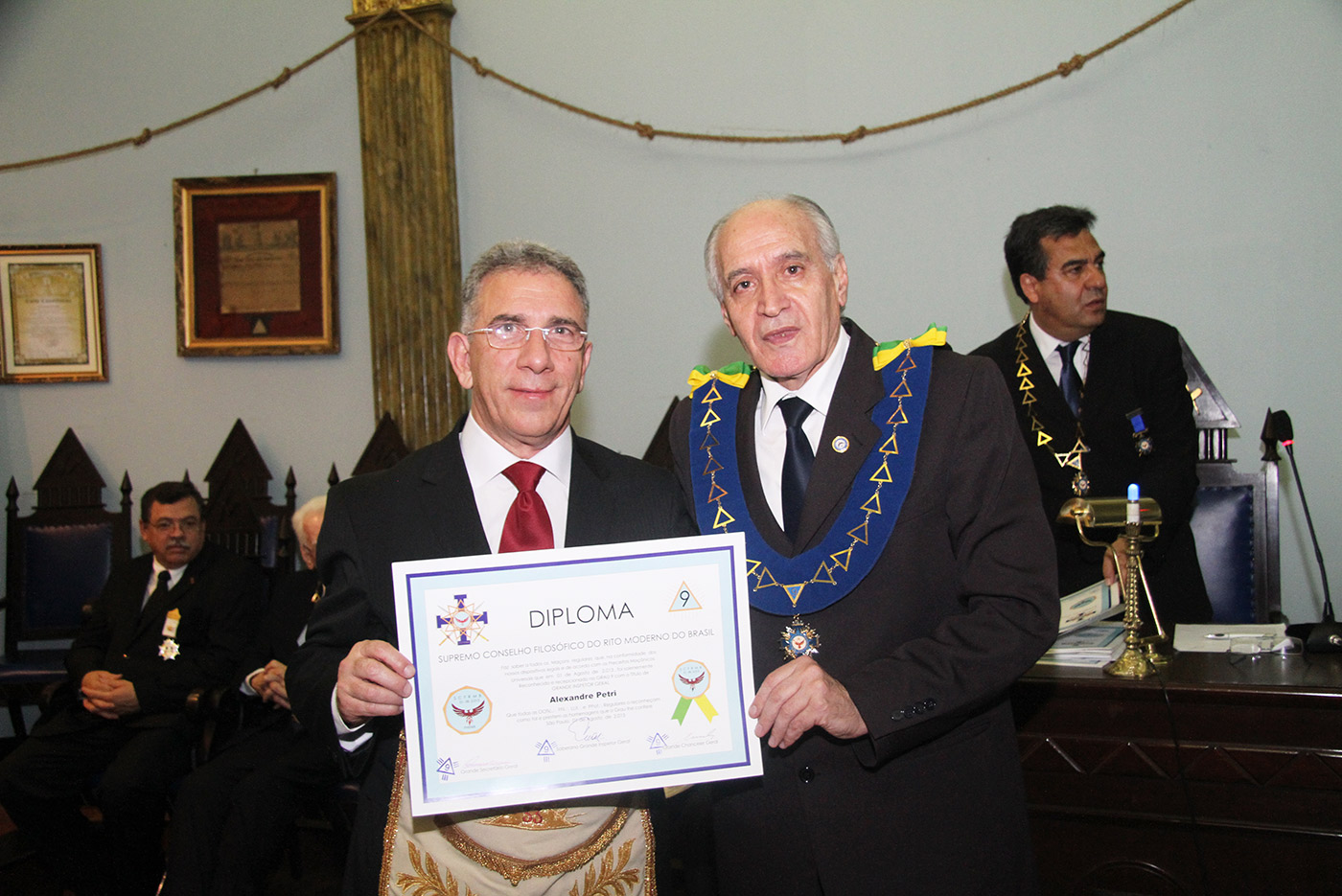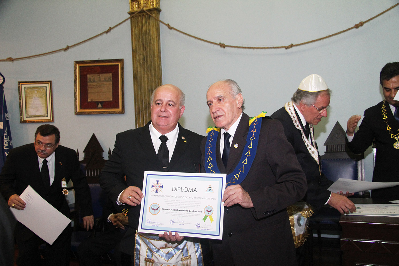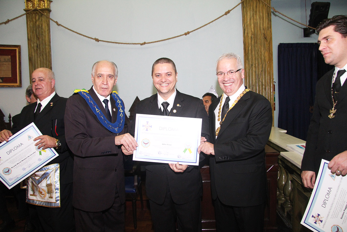 Dia 24/07/2015 (6ªf) às 19h no Templo Nobre da ARLS BENFEITORA E PORTADORA DA ESTRELA DA DISTINÇÃO MAÇÔNICA, ESTRELA DE SANTOS – 1156 – RITO MODERNO, localizada na Rua Almeida de Moraes, 13, ao Vale de Santos/SP, Sessão Ordinária do SUPREMO CONSELHO FILOSÓFICO DO RITO MODERNO DO BRASIL, tendo como Soberano Grande Inspetor Geral – Sérgio Ruas, RELAÇÃO DE MEMBROS FUNDADORES DO SUPREMO CONSELHO FILOSÓFICO DO RITO MODERNO DO BRASIL – SCFRMB, FUNDAÇÃO 01 DE AGOSTO DE 2013: ADEMIR CÂNDIDO DA SILVA, ADHEMAR RAMOS, ALBERTO CARNEIRO ESPÓSITO, ALBERTO LEÃO FUERTE, ALEXANDRE ARTHUR HAMPARIAN, ALFÉRIO DI GIAIMO NETO, ALFREDO FERNANDO V. POMMELLA, ANTONIO CARLOS MENDES, ANTONIO ESTEVAM GIFFONI, ARISTIDES MANOEL DE ARRUDA, ARQUIARIANO BITES LEÃO, AUGUSTO CESAR PINTO, BENEDITO MARQUES BALLOUK FILHO, CALIL BASSIT NETO, CÍCERO DE ARAÚJO FILHO, CLÁUDIO AURICHIO TURI, CLÁUDIO ROQUE BUONO FERREIRA, DARCI BONINI, DECIO TRIZI, DENIS TAFARELLO, EGISTO FRANCISCO RIGOLI, ÉRICO MANOEL DE ALMEIDA, FELIPE SPIR, FERNANDO TULLIO COLACIOPPO Sº., FRANCISCO GOMES DA SILVA, FRANKLIN DE OLIVEIRA, GERSON MAGDALENO, HELDER CYRILLO G. DA SILVA, ITIBERÊ ROCHA MACHADO, IVALDIR DUARTE, JAIR DE FRIAS, JAIR CALIXTO, JOÃO DE SOUZA MEIRELLES JR., JOSÉ FERREIRA DE ANDRADE JR., JOSÉ GONÇALVES, JOSÉ MORETZSHON DE CASTRO, JÚLIO BELMONTE DE CARVALHO, LUIZ PAULO SILVA, MARCELO MILITELLO, MARCELO GOMES FRANCISCO, MÁRCIO ANDRÉ RODRIGUES MARCOS, MARCIO BONTEMPO, MÁRIO SÉRGIO NUNES DA COSTA, MATHEUS CASADO MARTINS, MAURO CASTRO MACCORI, MIGUEL ANGELO DE SOUZA, MILTON MILANI, OCTÁVIO DE OLIVEIRA, ORENIDES PELEGRINI, ORLANDO MORGADO, PAULO RANGEL DO NASCIMENTO, PAULO SILAS CASTRO DE OLIVEIRA, PEDRO BORSETTO FILHO, PEDRO RODRIGUES BUENO JR., RENATO SOARES PRESTES, ROBERTO BATISTA DOS SANTOS, ROBERTO RODRIGUES BRAGA, RONALDO FIDALGO JUNQUEIRA, SÉRGIO RENATO MONTEIRO DE SOUZA, SÉRGIO RUAS, WALTER DE OLIVEIRA LIMA TEIXEIRA, WANDERLEY NEUSTAEDTER, WILSON AGUIAR FILHO, estando presente as autoridades maçônicas SÉRGIO RUAS – Ministro Presidente do STEM, Benilo Allegretti Grão Mestre Estadual do Mato Grosso do Sul, MÁRIO SÉRGIO NUNES DA COSTA – GME-Honra-GOSP, FERNANDO TULLIO COLACIOPPO Sº. – Secretário Geral Adj. Comunicação e informática do GOB, PAULO SILAS CASTRO DE OLIVEIRA – Pres. GCKFRMB/SP, JOSÉ ROBERTO SOUZA Dep. Federal/GOB, entre outras autoridades.