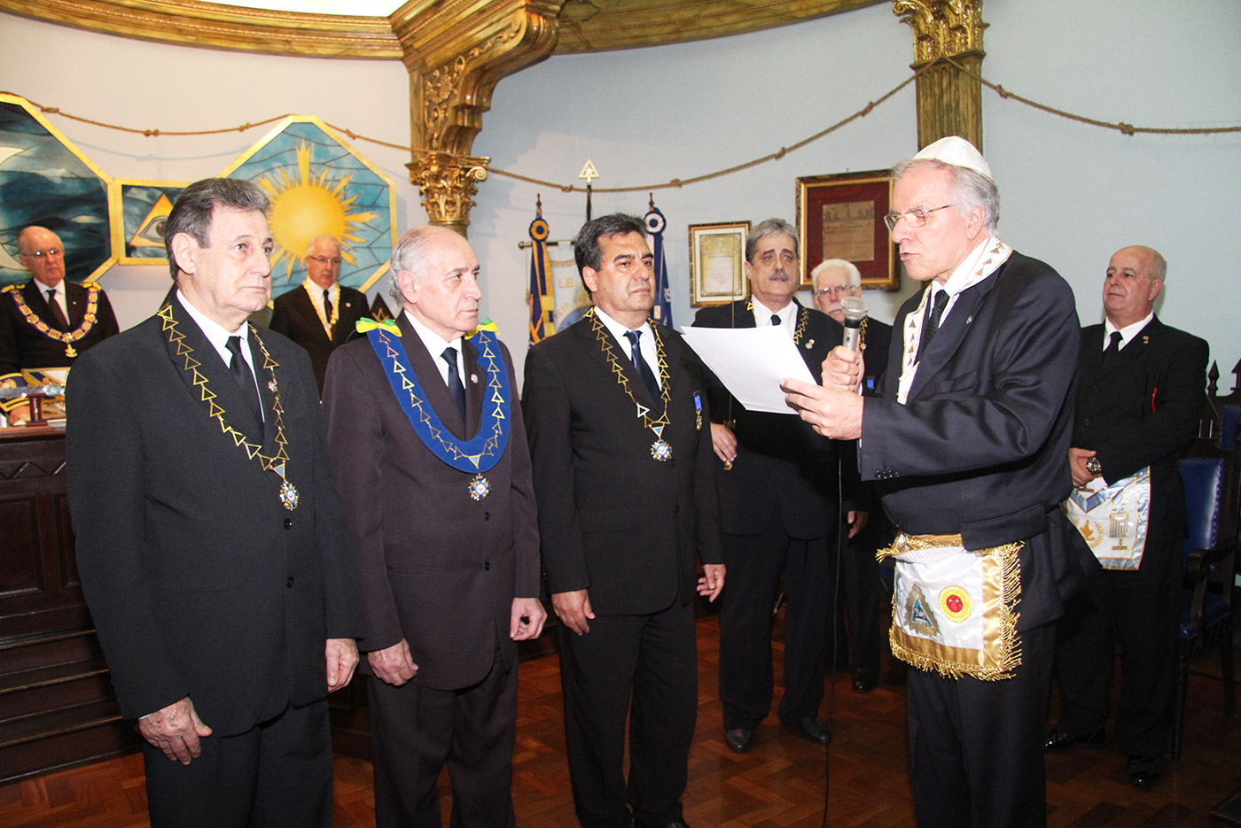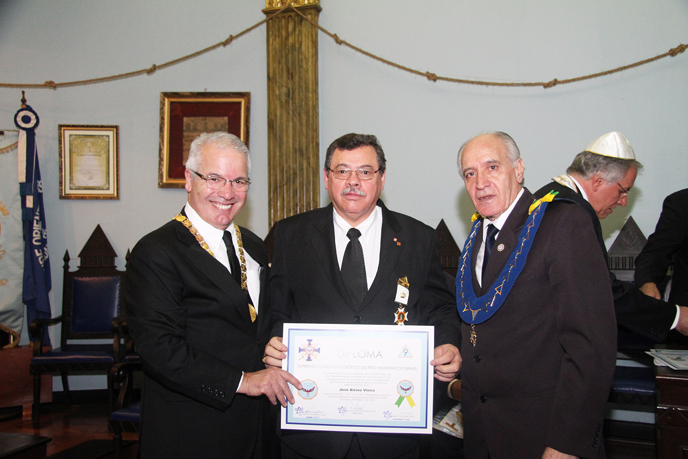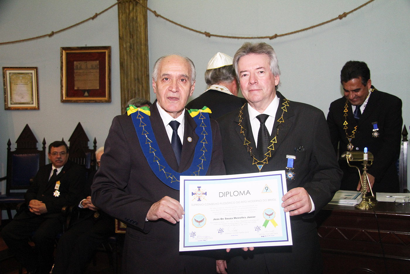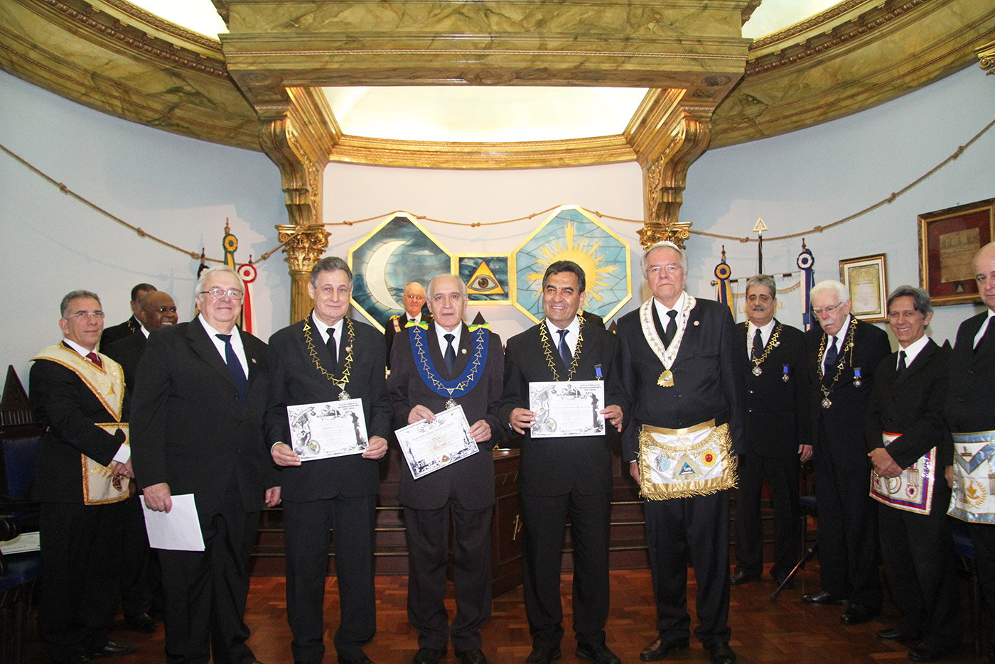 Dia 24/07/2015 (6ªf) às 19h no Templo Nobre da ARLS BENFEITORA E PORTADORA DA ESTRELA DA DISTINÇÃO MAÇÔNICA, ESTRELA DE SANTOS – 1156 – RITO MODERNO, localizada na Rua Almeida de Moraes, 13, ao Vale de Santos/SP, Sessão Ordinária do SUPREMO CONSELHO FILOSÓFICO DO RITO MODERNO DO BRASIL, tendo como Soberano Grande Inspetor Geral – Sérgio Ruas, RELAÇÃO DE MEMBROS FUNDADORES DO SUPREMO CONSELHO FILOSÓFICO DO RITO MODERNO DO BRASIL – SCFRMB, FUNDAÇÃO 01 DE AGOSTO DE 2013: ADEMIR CÂNDIDO DA SILVA, ADHEMAR RAMOS, ALBERTO CARNEIRO ESPÓSITO, ALBERTO LEÃO FUERTE, ALEXANDRE ARTHUR HAMPARIAN, ALFÉRIO DI GIAIMO NETO, ALFREDO FERNANDO V. POMMELLA, ANTONIO CARLOS MENDES, ANTONIO ESTEVAM GIFFONI, ARISTIDES MANOEL DE ARRUDA, ARQUIARIANO BITES LEÃO, AUGUSTO CESAR PINTO, BENEDITO MARQUES BALLOUK FILHO, CALIL BASSIT NETO, CÍCERO DE ARAÚJO FILHO, CLÁUDIO AURICHIO TURI, CLÁUDIO ROQUE BUONO FERREIRA, DARCI BONINI, DECIO TRIZI, DENIS TAFARELLO, EGISTO FRANCISCO RIGOLI, ÉRICO MANOEL DE ALMEIDA, FELIPE SPIR, FERNANDO TULLIO COLACIOPPO Sº., FRANCISCO GOMES DA SILVA, FRANKLIN DE OLIVEIRA, GERSON MAGDALENO, HELDER CYRILLO G. DA SILVA, ITIBERÊ ROCHA MACHADO, IVALDIR DUARTE, JAIR DE FRIAS, JAIR CALIXTO, JOÃO DE SOUZA MEIRELLES JR., JOSÉ FERREIRA DE ANDRADE JR., JOSÉ GONÇALVES, JOSÉ MORETZSHON DE CASTRO, JÚLIO BELMONTE DE CARVALHO, LUIZ PAULO SILVA, MARCELO MILITELLO, MARCELO GOMES FRANCISCO, MÁRCIO ANDRÉ RODRIGUES MARCOS, MARCIO BONTEMPO, MÁRIO SÉRGIO NUNES DA COSTA, MATHEUS CASADO MARTINS, MAURO CASTRO MACCORI, MIGUEL ANGELO DE SOUZA, MILTON MILANI, OCTÁVIO DE OLIVEIRA, ORENIDES PELEGRINI, ORLANDO MORGADO, PAULO RANGEL DO NASCIMENTO, PAULO SILAS CASTRO DE OLIVEIRA, PEDRO BORSETTO FILHO, PEDRO RODRIGUES BUENO JR., RENATO SOARES PRESTES, ROBERTO BATISTA DOS SANTOS, ROBERTO RODRIGUES BRAGA, RONALDO FIDALGO JUNQUEIRA, SÉRGIO RENATO MONTEIRO DE SOUZA, SÉRGIO RUAS, WALTER DE OLIVEIRA LIMA TEIXEIRA, WANDERLEY NEUSTAEDTER, WILSON AGUIAR FILHO, estando presente as autoridades maçônicas SÉRGIO RUAS – Ministro Presidente do STEM, Benilo Allegretti Grão Mestre Estadual do Mato Grosso do Sul, MÁRIO SÉRGIO NUNES DA COSTA – GME-Honra-GOSP, FERNANDO TULLIO COLACIOPPO Sº. – Secretário Geral Adj. Comunicação e informática do GOB, PAULO SILAS CASTRO DE OLIVEIRA – Pres. GCKFRMB/SP, JOSÉ ROBERTO SOUZA Dep. Federal/GOB, entre outras autoridades.
