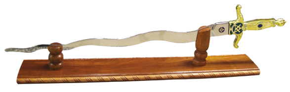 A que tem a lâmina ondulada, qual língua de fogo serpentino. É usada pelo Venerável Mestre como símbolo do poder criador do G.’.A.’.D.’.U.’. Ao seu triplo tinir com os golpes do melhete (símbolo da autoridade, de que o Venerável se acha investido pela constituição maçônica), é o recipiendário iniciado e admitido nas fileiras da Ordem. Em alguns países latinos é também usada pelo cobridor que assim guarda o Templo qual Cherubim a “guardar o caminho da árvore da vida” (Gênesis 3:24).
